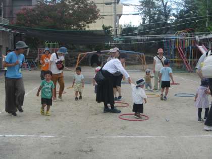 今日は,未就園児こっこ組のうんどうかいを行いました。暑い中でしたが,いつも来るお友達はもちろん,新しいお友達も遊びに来て,かわいいらしい運動会ができました。来週もこっこ組がありますので,遊びに来てくださいね。