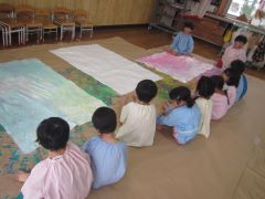 年中さくら組では、絵の具を使って遊びました。