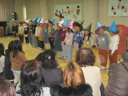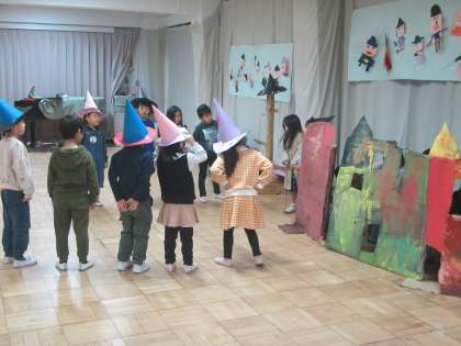 ゆり組にとっては、幼稚園最後の生活発表会でした。幼稚園のリーダーとしてこの1年間いろいろな場面で活躍してきました。長い歌詞をしっかりと覚えて友達と声を合わせる姿、自分の役割を責任をもって、友達と気持ちを合わせながらやりきろうとする姿、劇あそびやリズムバンド、どれも真剣な表情で取り組む表情は忘れられません。また、今回の劇あそび『ゆり組とまじょのおしろ』のお話は、いろんな話をもとに友達や先生と一緒に考えたお話でしたね。みんなで知恵と勇気をもって、力を合わせる姿、本当にかっこよかったです。