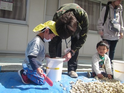たんぽぽ組の親子で、ミニトマトを一緒に植えました。