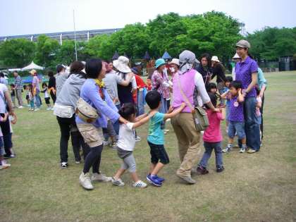 親子で触れ合いを楽しみながら,なべなべそこぬけをしたり,