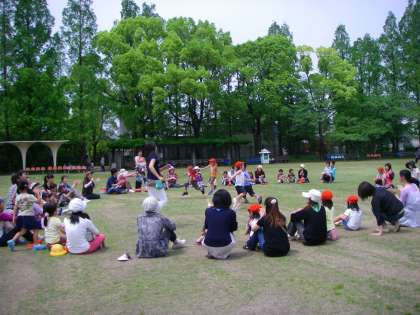 新緑が気持ちのよい中,淀のみどりの広場に親子遠足に出かけました。