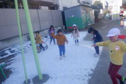 週末に降った雪が園庭に残っていました。