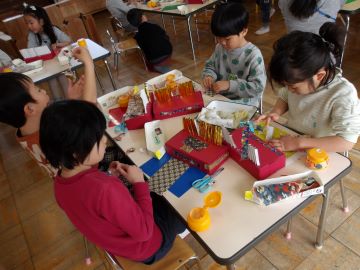 幼稚園の子どもたちは、雛飾り作りに取り組みました。
