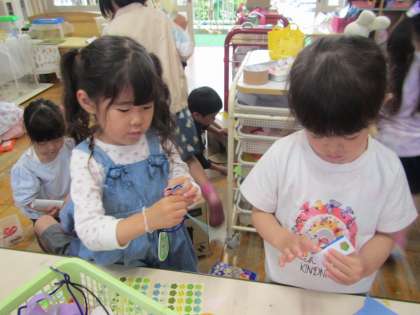 一緒にレジや飾りをつくったり