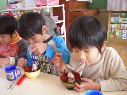 今日はぜんざいを、みんなでいただきました。