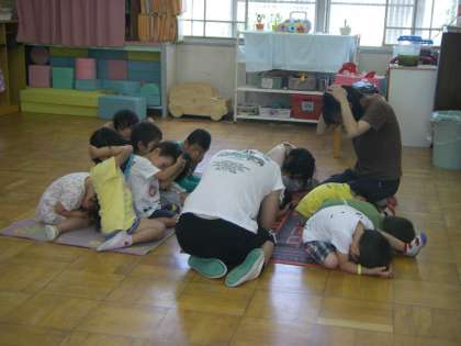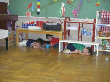 地震と火事の避難訓練! 3歳児,どうしていたのでしょう。