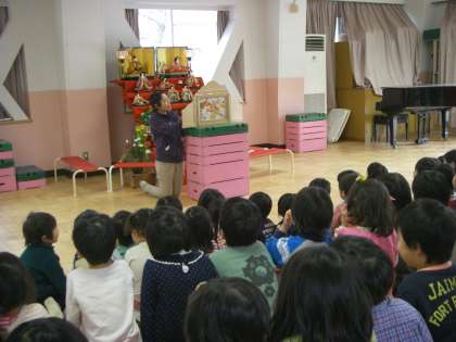 「うれしいひなまつり」の歌を歌ったり,先生からひなまつりやひなあられについてのお話を聞いたり,紙芝居を見たりしました。