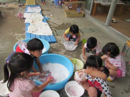 少し前から,小さい布を洗う「洗濯ごっこ」を楽しんでいました。