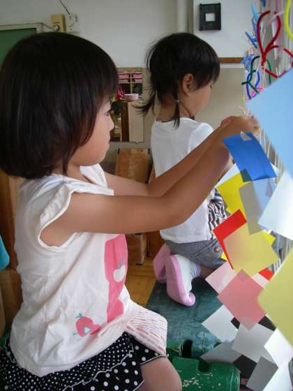 そして,七夕の飾りを見せると「つくりたい!」「できるで!」と自信満々でした。