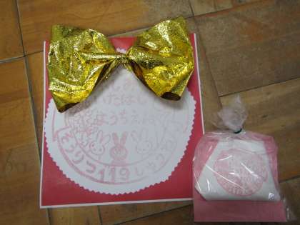 また、創立記念品は、保護者の方がつくってくださった、すてきな消しゴムはんこを押したハンカチをいただきました。