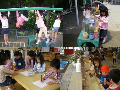 3歳児、思いっきり遊んだ後は、うがいと手洗い、ぶくぶく、ごしごししっかりします。