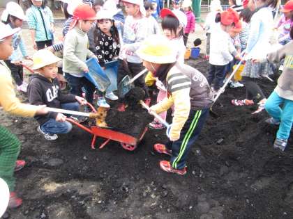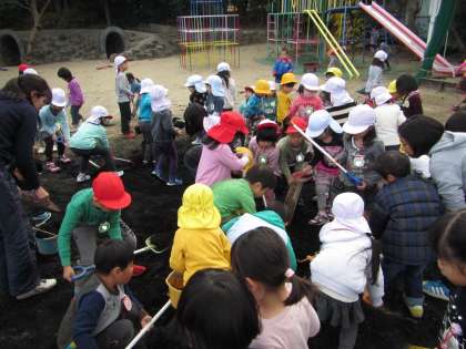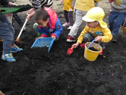 昨日は、たくさんの方々にお世話になり、やきいも大会を無事に終えることができました。今日は、おいもを焼いた後の灰を、みんなできれいにしました。砂すくいやスコップ、バケツなど、砂場の用具から灰を運べるものをさがしてきて、友達と力を合わせながら、何度も園庭の隅まで運びました。たくさんの灰の山でしたが、みんなで力を合わせ、最後まで頑張ってきれいにしました。また、今日は、ゆり組の子どもたちが、1年生のお兄さん、お姉さんからもらった招待状を嬉しそうに手に持ち、伏見板橋小学校に出かけました。体育館に入ると、いろいろな、秋のあそびコーナーが準備されていました。お土産に、松ぼっくりで作ってあるツリーや動物をもらい、幼稚園に帰ると嬉しそうに見せてくれました。来年は、いよいよ1年生です。今日の楽しかった交流で、1年生になる期待が、またひとつ膨らんだことと思います。