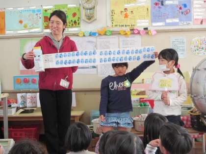年長児は,最後の身体計測と保健指導をしてもらいました。生まれたときの体重と今の体重を比較して大きくなったことを喜びました。でも,一人で大きくなったわけではなく,おうちの方がいつもおいしいご飯をつくってくれたりみんなのことを見守っていてくれているから,ここまで大きくなったのだということを保健職員の先生が伝えると,おうちの方のことを思い出しながらしっかりと聞き,心に響いているようでした。感謝の気持ちを伝える大切さも教えてもらいました。