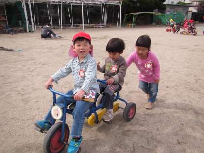 少しずつ暖かくなっていることを感じ、戸外に出て遊ぶ姿が増えました。毎日少しずつ園庭がにぎやかになっているように感じます。幼稚園の中の春の訪れを見つけながら遊んでいます。