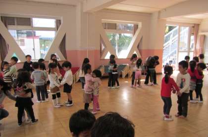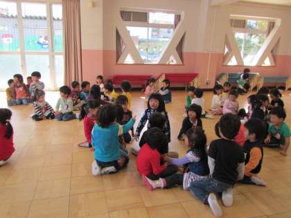 今日は年少児の担任の先生に「この前に一緒に遊んだ後に,年少組さんが年中組さんのことをかっこいいお兄さんお姉さんやったって言ったはったよ」と言うことをきいて,年中組の子どもたちはまた顔つきが変わりました。