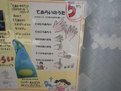 ・「てあらいのうた」に合わせて30秒かけて手をピカピカにしましょう