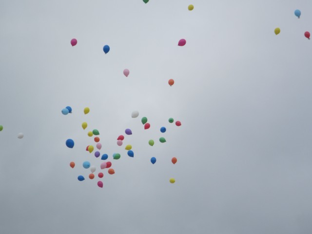 最後には、小学校の校庭で記念の風船飛ばしを行いました。