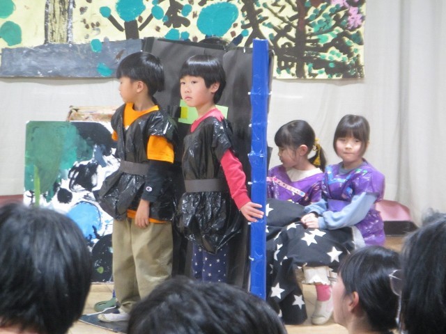 今日は生活発表会がありました。各学年、これまでの遊びや生活から生まれた遊びや劇をたくさんのお客さんに見てもらいました。