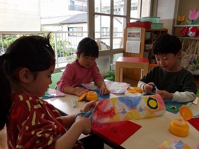 シール版画と染紙をして、自分だけのこいのぼりをつくりました。