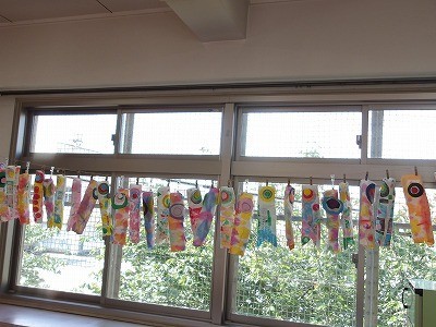 みんなで並んだこいのぼり、ゆり組の子どもたちのように仲良さそうですね。