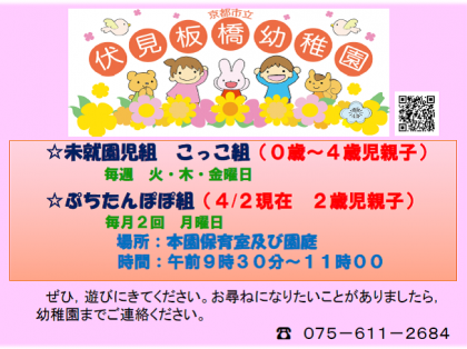 未就園児 こっこ組・ぷちたんぽぽ組5月のお知らせ