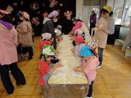 今年初めての行事です。みんなが楽しみに待っていた「おもちつき」です。