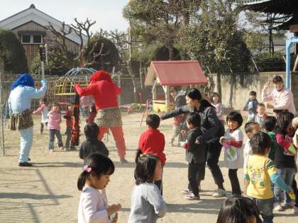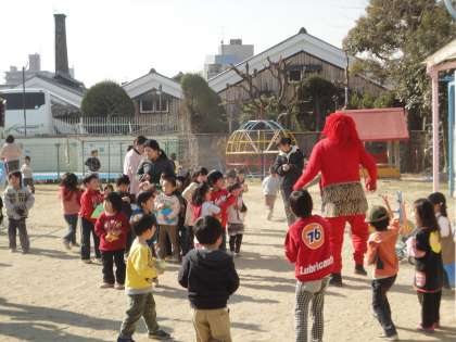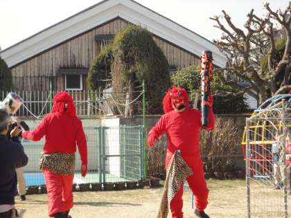 園に鬼がやってきました。「おにはそと、ふくはうち」子どもたちの大きな声。