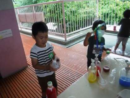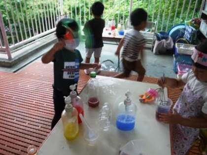 「おいしくなぁーれ!」「ちちんぷいぷい…」など,自分なりのおまじないを唱えながらおいしいジュースをつくりました。