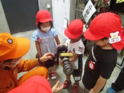 前回,幼稚園に来てくれた消防車と,