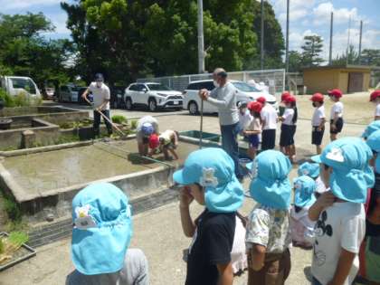 『どろんこのなか,歩くの上手だね!』『しっかり苗を植えてるね!』とお褒めの言葉もいただき,年長児たちは真剣に取り組んでいました。