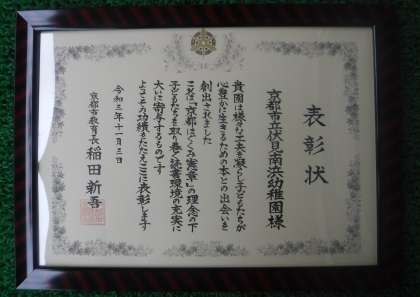 京都市子どもの読書活動優秀実践団体 教育長賞 受賞しました