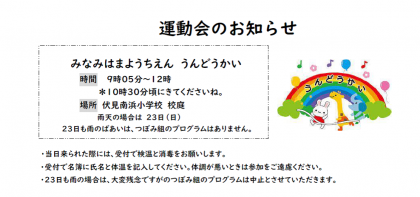 10月22日(土)は幼稚園の運動会です。