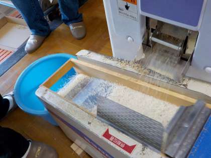小学校で精米されるということで、伏見南浜小学校の靴箱横へお邪魔させていただきました。