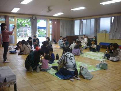 5歳児はグループ活動を見てもらいました。5歳児ならではの活動です。お家の人に見守られる中で、友達とかかわりながら『友達と一緒』に真剣に取り組む姿からは年長児としての育ちを感じました。
