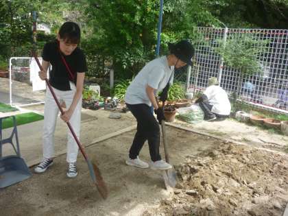 幼稚園の先生たちみんなで、明日から気持ちよく、そして楽しく遊べるように、準備をしました。