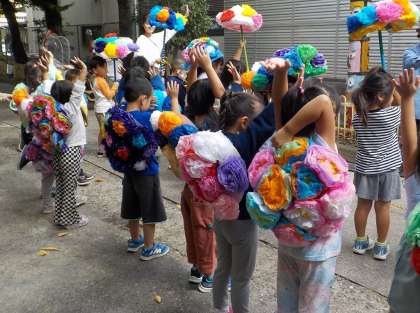 幼稚園で花がさパレードをしました