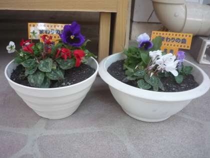 そして、先日、ひまわりの会様より、きれいな鉢花をいただきました。桃陵中学校の生徒会の方と一緒に植えてくださったお花です。