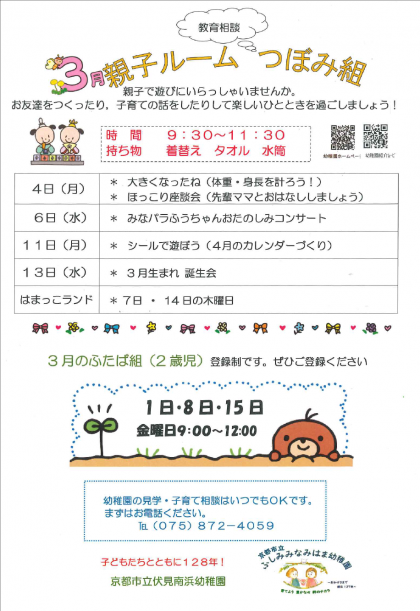 3月、今年度最後のつぼみ組・ふたば組の予定です。