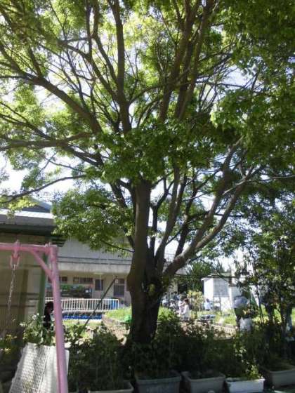 幼稚園の園庭には、木や草花など自然がいっぱいあります。