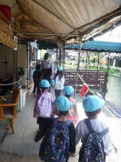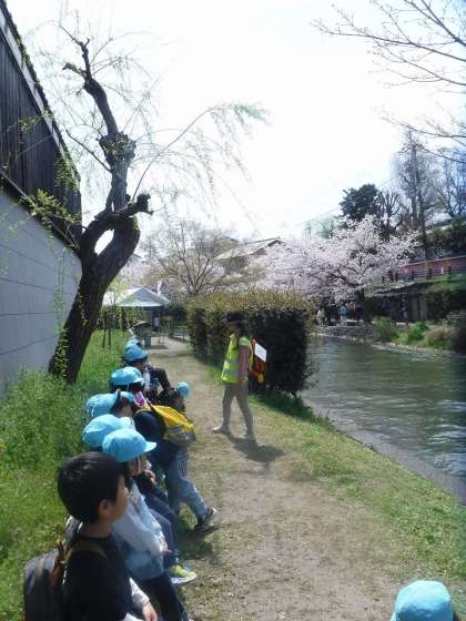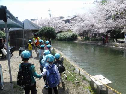 今日は、年長児そら組の子どもたちと地域の桜を見に、おさんぽ遠足に出かけました。十石舟ののりばまで友達と手をつないで歩き、「桜の色は、ピンクと白と赤!」「桜発見!」と声を出しながら、春を感じたひとときでした。