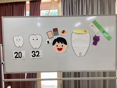 6月は虫歯予防月間ということで、保健指導では「虫歯と歯みがき」についてお話ししました。