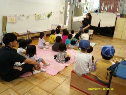 今週も最終日を迎えました。ほっこり(預かり)保育にやって来る子どもたちも多くなり、遊戯室の色んな場所で色んな声が聞こえてきています。毎日同じようなあそびを繰り返している様に見えても、その繰り返しの中に子どもたちは日々色々な試行錯誤をし、挑戦もしながら新たな発見をしている様です。人数が増えるとその分だけの「やってみたい。」「こうしてみたら?」の場面もいっぱい集まってきます。夏のほっこり保育も残り少なくなってきました。セミの声はまだまだ元気ですが、みんなが揃う9月…待ち遠しいです。