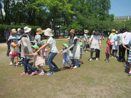 5月26日、快晴の空の下、淀の競馬場『緑の広場』に親子遠足に行きました。