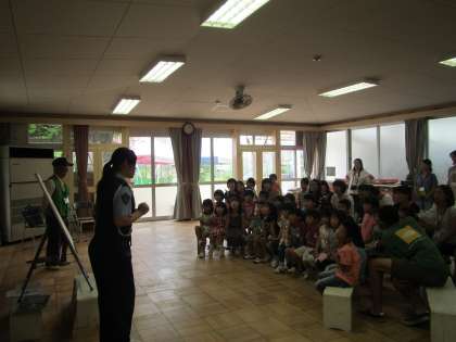 6月30日年長組の子どもたちと保護者の方が交通教室に参加しました。地域の交通安全推進委員会の東の様にもご出席いただき、一人で判断して横断歩道を渡る練習を中心に行いました。『自分で判断する』ということはとても難しいようでしたが。子どもたちは真剣に取り組んでいました。