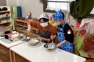 幼稚園のお誕生日や日頃の遊びから、ケーキづくりや、ケーキ屋さんごっこなどに興味をもっているはな組さん。