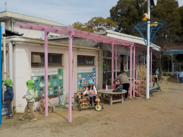 令和7年度 京都市立幼稚園PTA連絡協議会のみなさまのお力添えのおかげで、園庭の遊具のペンキ塗装が進み、子どもたちが今日「きれいになっている!」と嬉しそうに遊び始めました。これまでも遊具に親しみ、毎日園庭で遊んできた子どもたちですが、今回さらにウキウキワクワクしながら遊ぶ様子が見られました。
