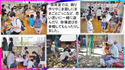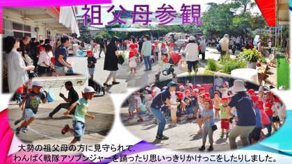 祖父母の方々に幼稚園での様子を観ていただき,一緒に触れ合っていただく一時を設けました。