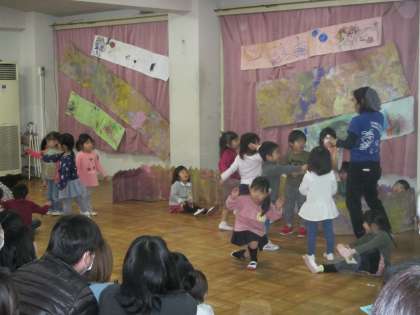 初めての生活発表会。お家の人がたくさんいる中で,嬉しくて張り切って楽しむ姿,ドキドキする姿,様々な姿がみられました。少しずつ場に慣れてくると,いつものように自分の思ったことを教師に伝えにきたり,体や表情で表したりしながら楽しみました。