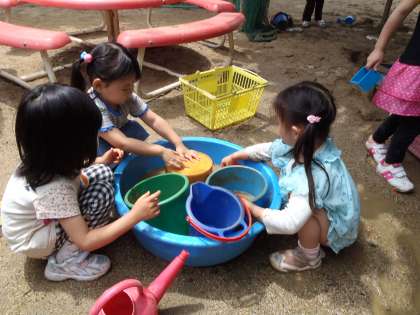 砂場の道具も洗って片付け,明日からまた砂場で遊ぶことが楽しみになりました。
